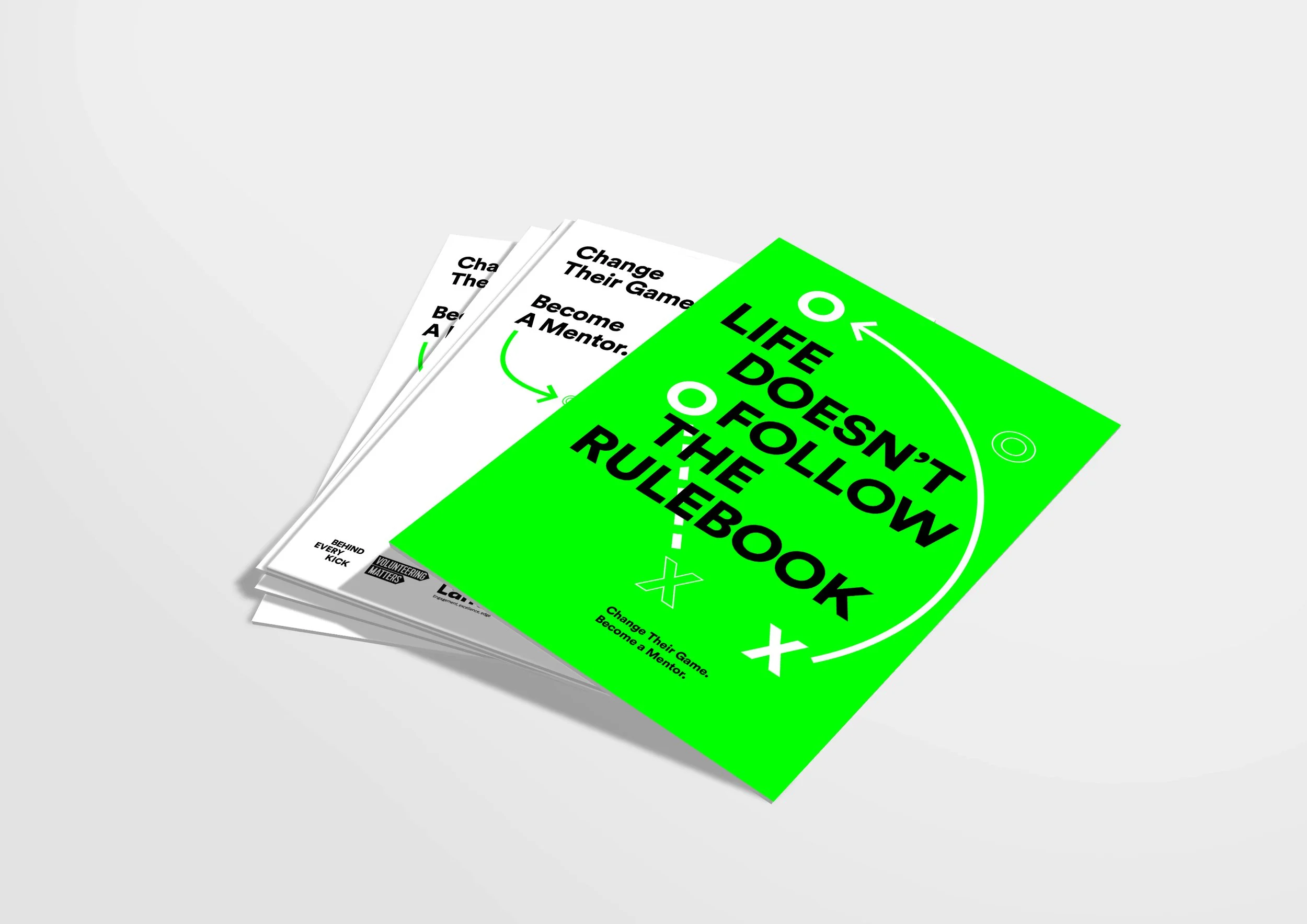 Behind Every Kick: a digital and print campaign to attract mentors to the club. With the pilot scheme aiming to enable young footballers to plan their futures, the visual solution was made up of football tactics and copywriting reflecting the world of football.